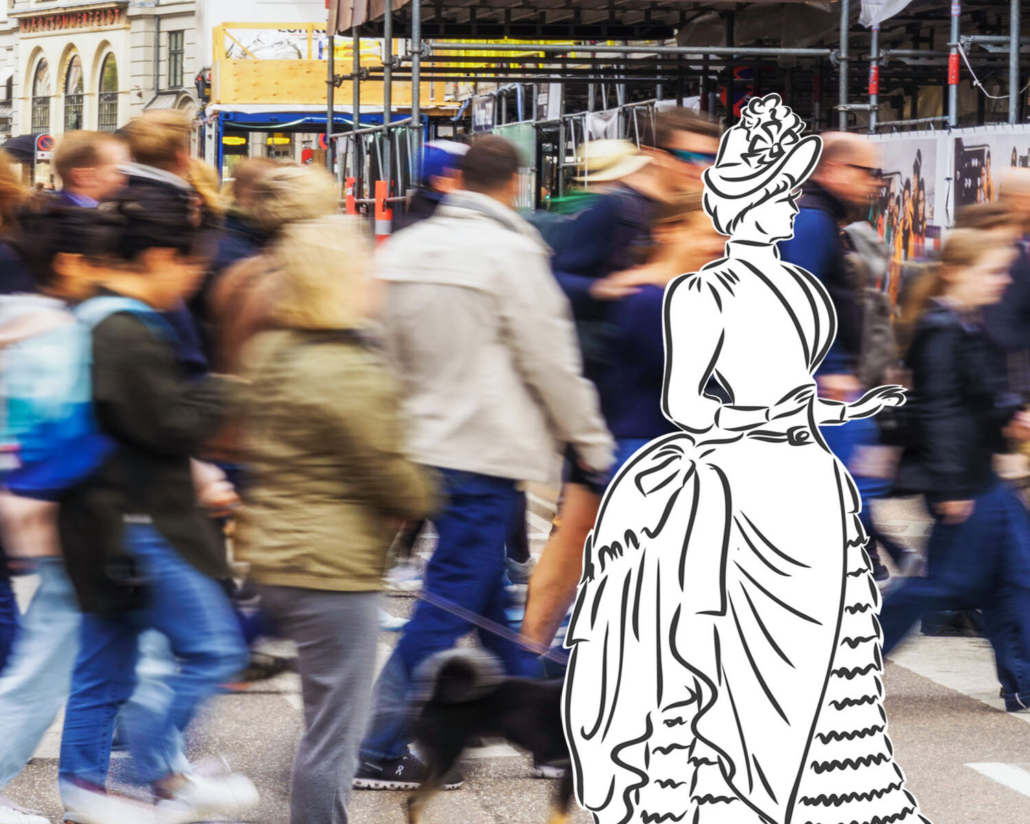 Eine Sängerin wandelt durch die City. Ihre Erscheinung ist fantasievoll, die Aufgabe klar: Sie bringt mit ihrem Gesang und spontanen Interaktionen mit den Passanten Leichtigkeit und Freude in die Einkaufsmeile.